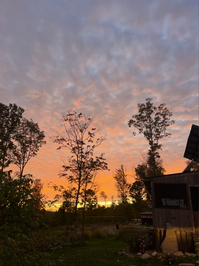 Bring it back to the basics with a visit to this tiny timber frame cabin in the western Maine woods. Powered by the sun and heated with the trees, this quaint cabin is humble and wholesome. Take inspiration from great minds like Henry David Thorough and find peace through self reliance and humility. Overlooking Mount Blue and the range of mountains to the South, enjoy both the sunrise and sunset views with this slower pace of life.